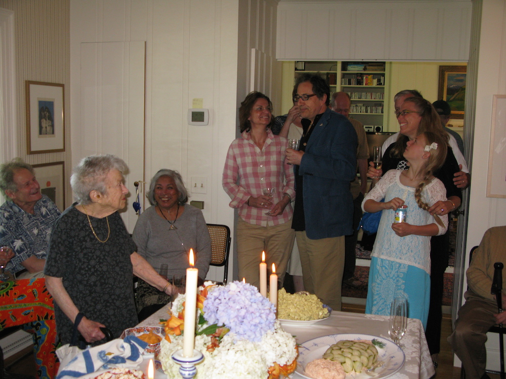 As an adult, I saw her less often than before, but our visits grew to be more and more special to me and I believe also to her. One year for her birthday, at a time while I was making a good high-tech salary, I offered to take her on a trip anywhere in the world she wanted. She chose Greece and we had a marvelous trip to Athens and various islands. She was generally an intrepid traveler, uncomplaining in the face of hardship. Not even the giant phallus statues at Delos deterred her. However, on the volcanic island of Santorini, she came close to her limit one day when we hiked down from the crater rim to the harbor, then had to ascend to return to our beautiful accommodations at the top. It was hot and dusty, the trail crowded with sweaty vendors hauling their wares on stinky donkeys up the steep hill. We were both very tired and thirsty. When she really started to flag and whined a bit, I suggested that she could ride a donkey the rest of the way. It was then that her stubborn side emerged: her mouth set in a tight line, she firmly refused and climbed determinedly with no further complaint to our destination. We celebrated with deletable drinks overlooking the deep blue Mediterranean sea.